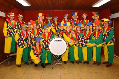 Diesmal stellt sich der Musikverein Mueckeln schon ziemlich am Anfang auf, mit der achten Karnevalsgesellschaft, denn jede Musikgruppe gehoert einer Gesellschaft an.